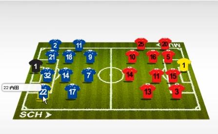 内田シャルケ試合放送まだ見てない人のためのフォーメーション確認画像。